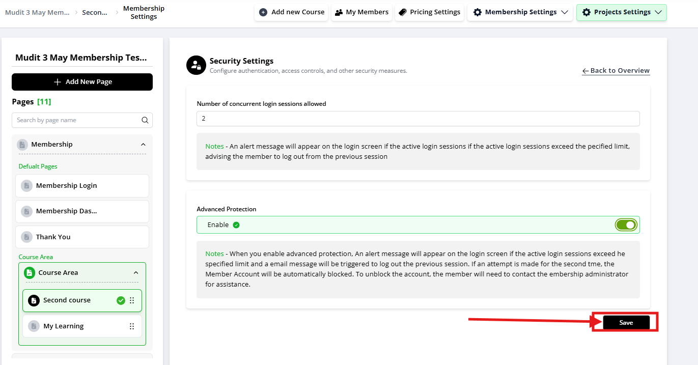 The 'Security Settings' feature empowers course creators to set a predetermined number of concurrent login sessions. This cap can range from as few as two sessions to as many as you deem appropriate or even allow unlimited access if that suits your business model. By setting these limits, you can prevent the misuse of accounts and stop the unauthorised distribution of your material.