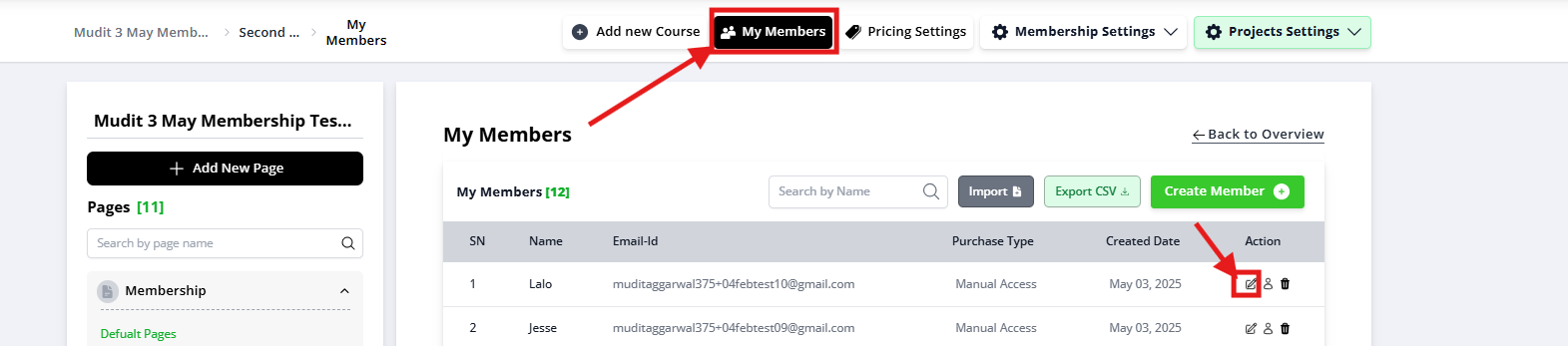 1. Access the 'My Members' Section: When you receive a member request, navigate to the 'My Members' area in your project where you manage your course subscribers.